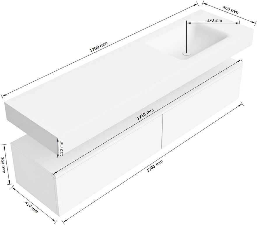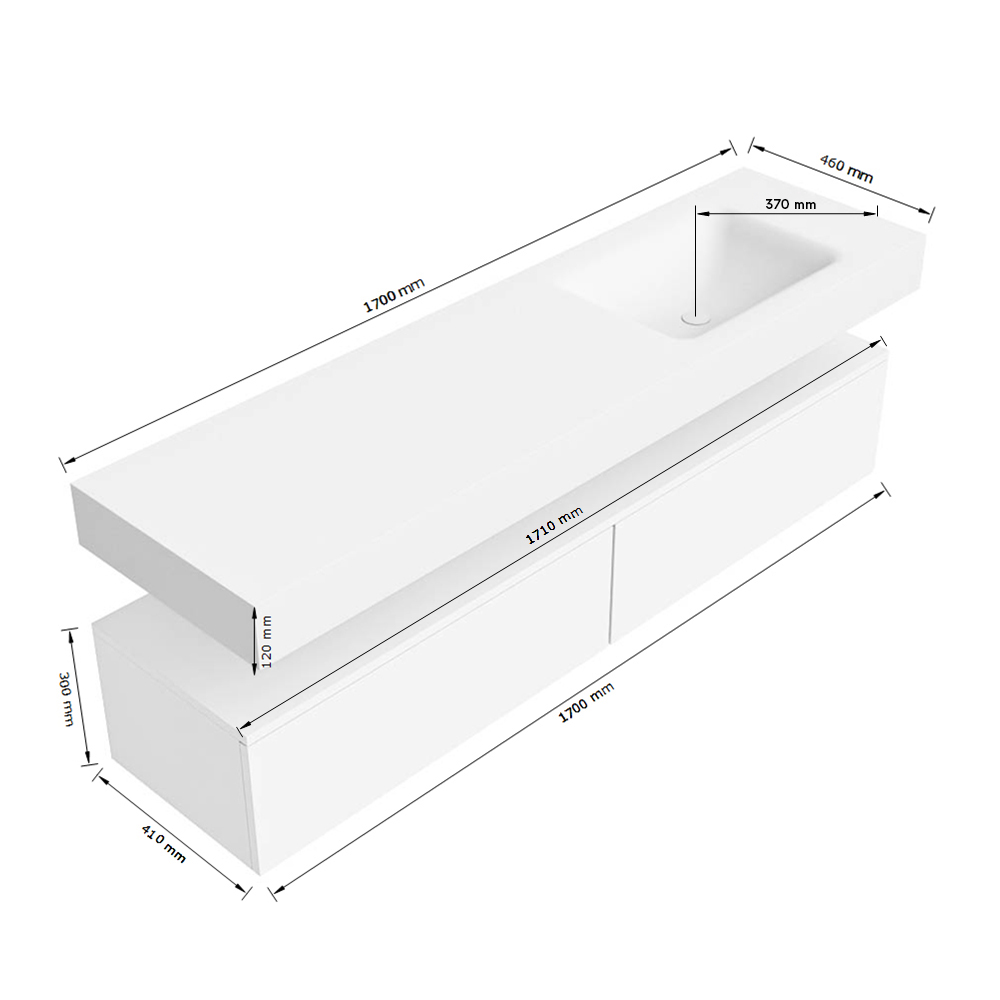 De ALAN badmeubelset combineert eigentijds design met ultieme flexibiliteit en is nu beschikbaar in al onze kleuren vrijhangende onderkasten. Je kunt kiezen voor een onderkast met 1 of 2 lades of een planchet, waardoor je de perfecte combinatie kunt vinden voor jouw badkamer. De CLOUD wastafel, gemaakt van solid surface materiaal met een organisch design, is verkrijgbaar in de stijlvolle kleuren Talc en Urban. Je hebt de keuze uit één of twee spoelbakken, met of zonder kraangaten, en de positie van de spoelbakken is volledig aanpasbaar: Centraal, links, rechts of dubbel. Met breedtes van 60 cm tot 200 cm, in stappen van 10 cm, past de ALAN badmeubelset in elke badkamer. De combinatie van stijl en praktische opbergruimte maakt het ideaal voor elke badkamerindeling!