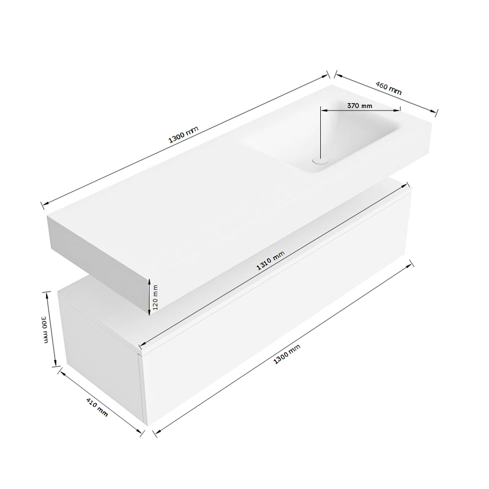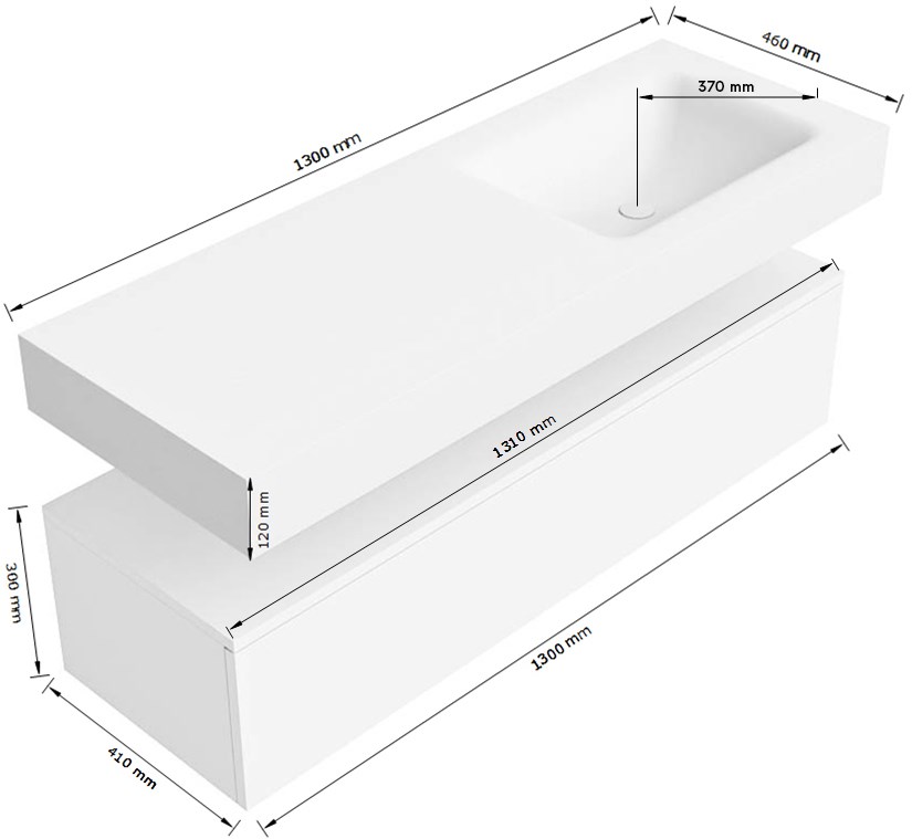 - Breedte wastafel: 130cm