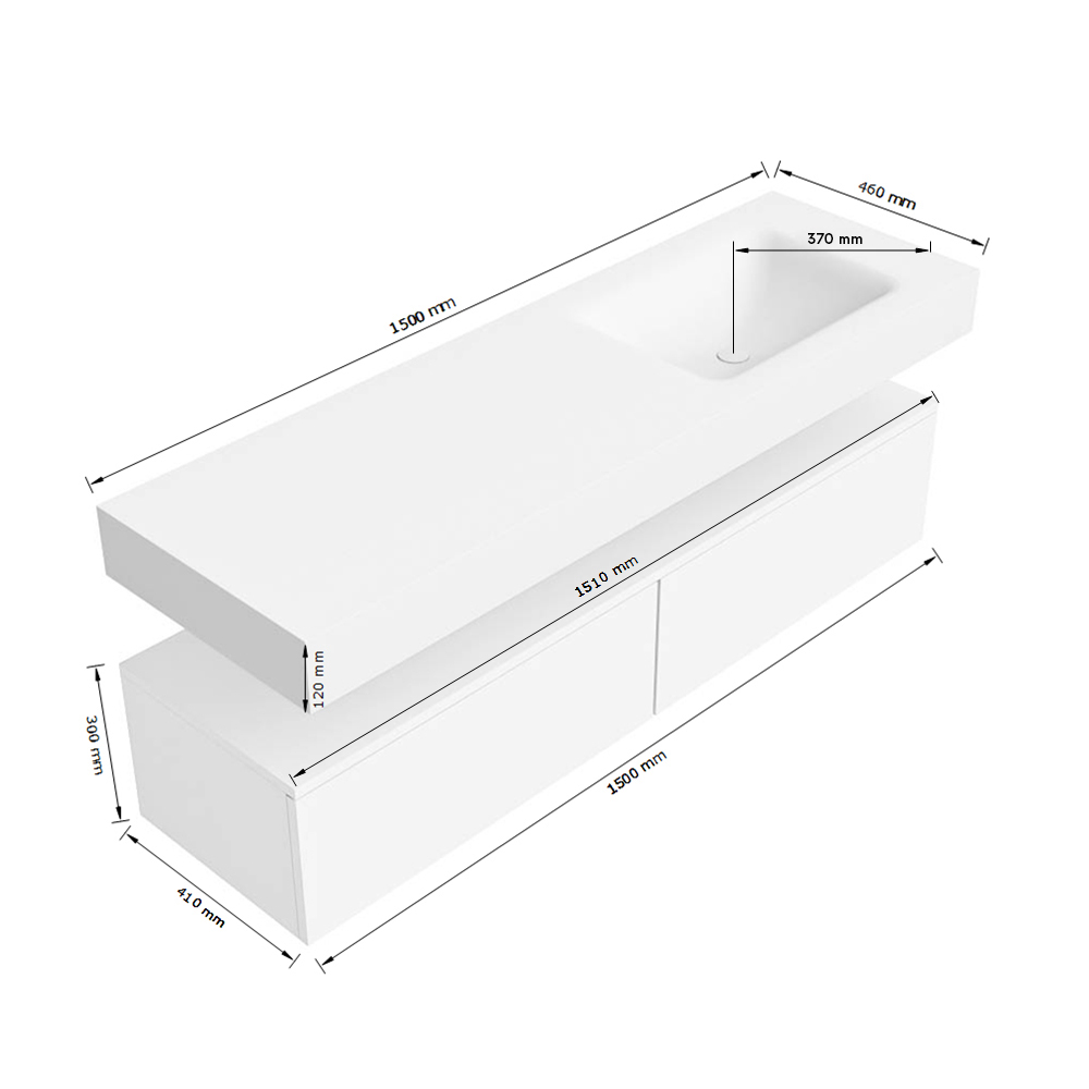 - Breedte wastafel: 150cm